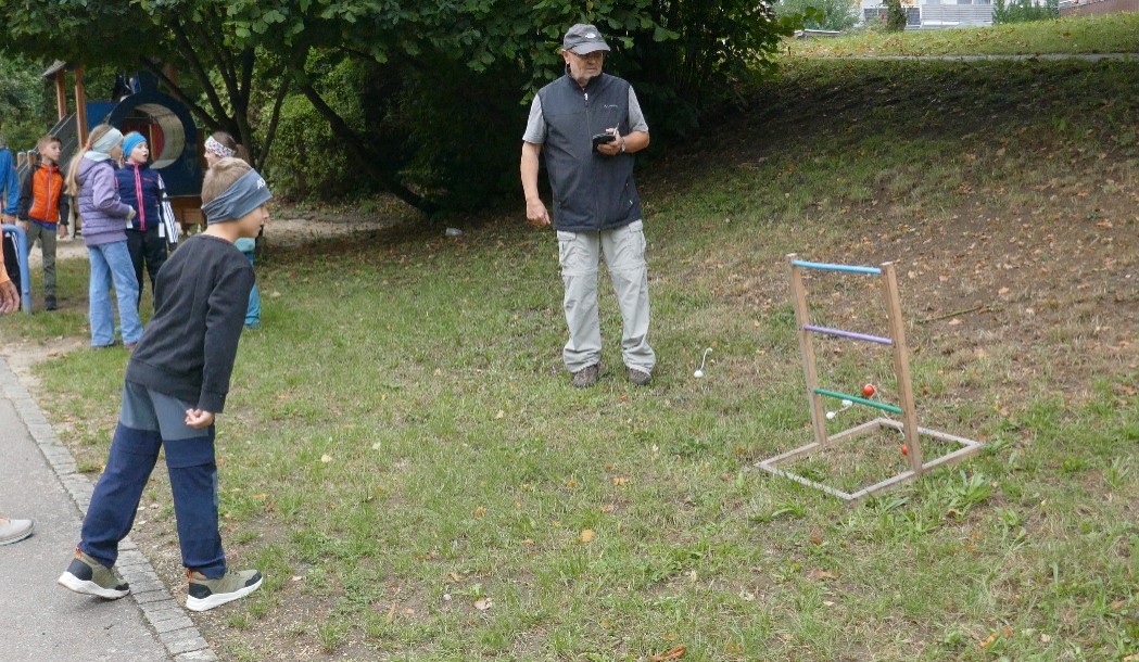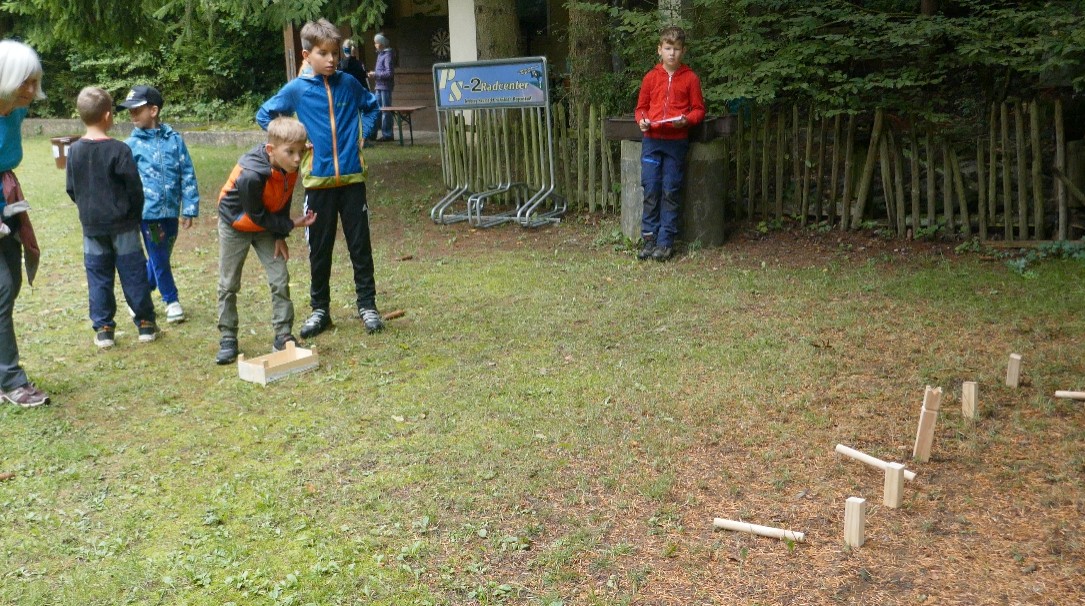 Am Ferienprogramm der Stadt Amberg beteiligte sich auch in diesem Jahr die Sektion Amberg des Bayerischen Wald-Vereins. Für die Kategorie "Natur" waren 14 Kinder im Alter von 6 bis 10 Jahren zu einer abenteuerlichen Wanderung eingeladen. Unter der Leitung von Karlheinz Cislaghi fand der erste Parcours am Spielplatz in der Eglseerstraße statt, mit einem Hindernislauf, der Geschicklichkeit und Schnelligkeit verlangte. Bei noch leichtem Morgennebel und kühlen Temperaturen verlief die Wanderung dann auf dem Erzweg über Wiesen, durch Wald und Feld zu den einzelnen Stationen. Da gab es Hufeisenwerfen, Kegeln, ein Stadt-Land-Fluss-Ratespiel, oder Bälle mit dem Kescher fangen. Ein imaginärer Fluss war mit Hilfe von Bierkästen zu überqueren, und auf Fluss-Steinen wurde balanciert. Auch sollten Tennisbälle in vorgesehene Mulden treffen. Die erste Etappe endete nach ca. 3 Kilometern am Karlschacht. Mit Unterstützung des Wander- und Volkssportvereins konnten die kleinen Teilnehmer dann mit großem Hallo auf diesem Gelände einlaufen. Hier mussten noch letzte sportliche Aufgaben bewältigt werden, wie Dartspiele, Sackwerfen, und ein Slalomlauf. Dann gab es aber eine wirklich verdiente Stärkung mit Bratwurstsemmeln und Getränken. Alle Kinder hatten vollen Einsatz gezeigt und freudig um Punkte gekämpft.